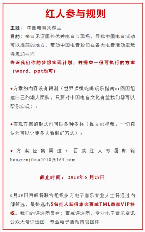 请领取百威最新的电音爱好者招募书,你的一切梦想皆有望成为现实。详细的规则与解释见下图。