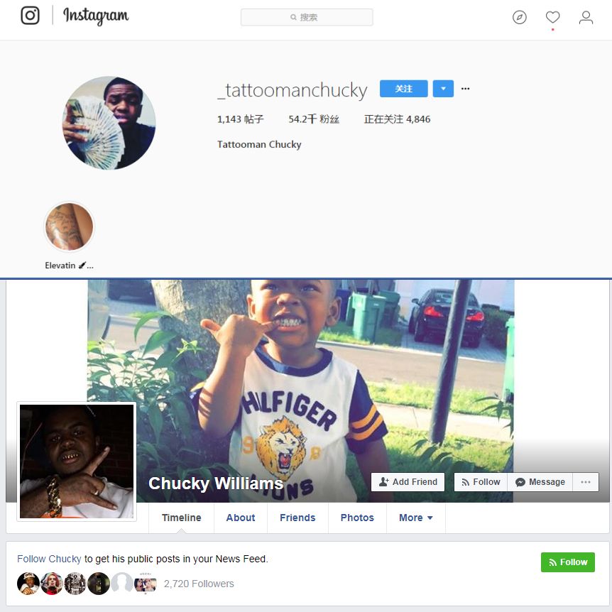不过,Dedrick D. Williams被许多粉丝猜测是受雇杀手,还有许多其它方面的原因。我们耗费了几个小时的时间,深入了解了Dedrick D. Williams的Instagram和Facebook。他的Instagram账号名为Tattooman Chucky,Facebook账号名为Chucky Williams。