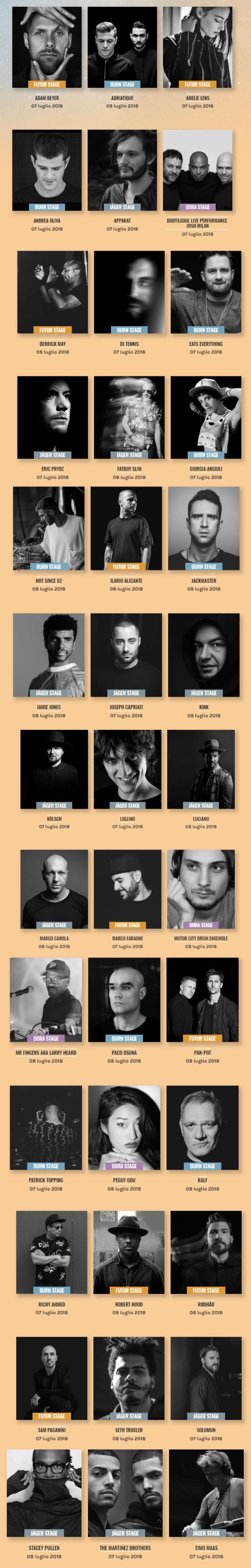 今年,Kappa Futur Festival分为Futur Stage/Jager Stage/Burn Stage/Dora Stage几大舞台。阵容方面,他们邀请到了来自全球各地最具影响力的一批Techno巨星。除了Techno的无数子类型以外,现场还包括Tech House和少许真正的House Music。举办时间为前天及昨天,刚刚结束。