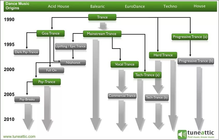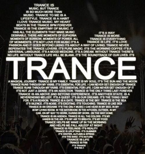 Trance是一个真乐迷不会轻易否认音乐风格的领域。例如Tech Trance/Psy-Trance/Goa Trance/Hard Trance/NRG Trance/Electro Trance/Uplifting Trance/Progressive Trance/Acid Trance/Future Trance/EDM Trance等等,都有广泛受众人群,乐迷保持对子类型的尊重。