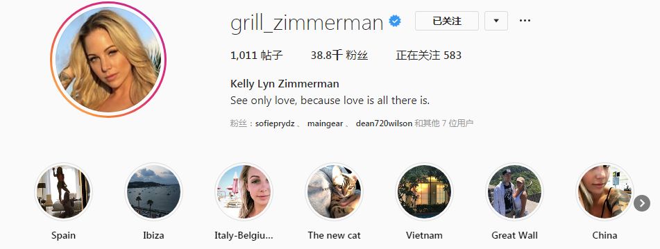 也如同Kelly Lyn Zimmerman的社交网络简介上一句简单的英语,“See only love, because love is all there is”,相信大家都能看得懂这句话的意思。现在的Kelly Lyn Zimmerman与Deadmau5亲密无间,形影不离,这再好不过,恭喜恭喜。