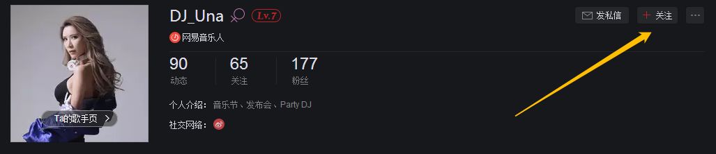 UNA还随着前不久第一首曲目的发布申请了网易音乐人,你还可以在网易云音乐上搜索“DJ UNA”关注她,成为她在网易云音乐上的“第二批”粉丝。
