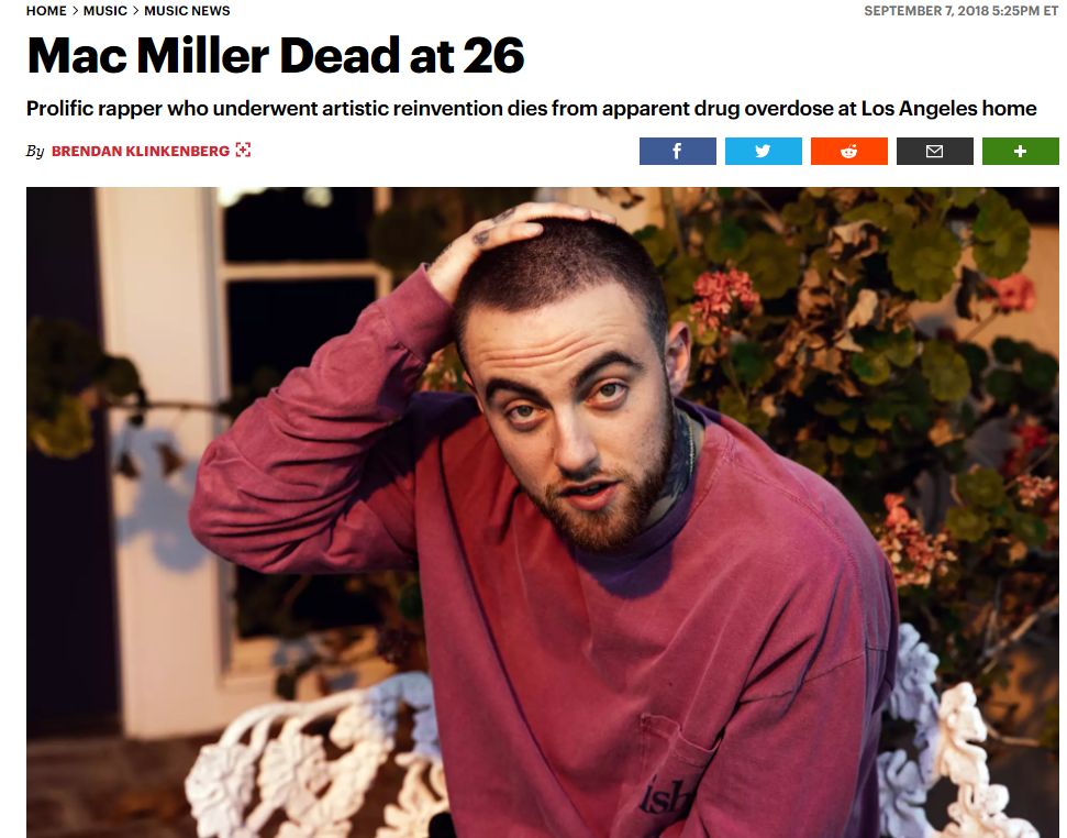 抱歉,这篇文章来晚了!就在美国时间2018年9月7日,线上粉丝上千万的超人气Rapper Mac Miller惋惜地离开了世界。经多家西方国家主流媒体报道,这名26岁的Hip-Hop界明星Mac Miller于周五在洛杉矶家中去世,死原为XX过量。词汇敏感不便指出。