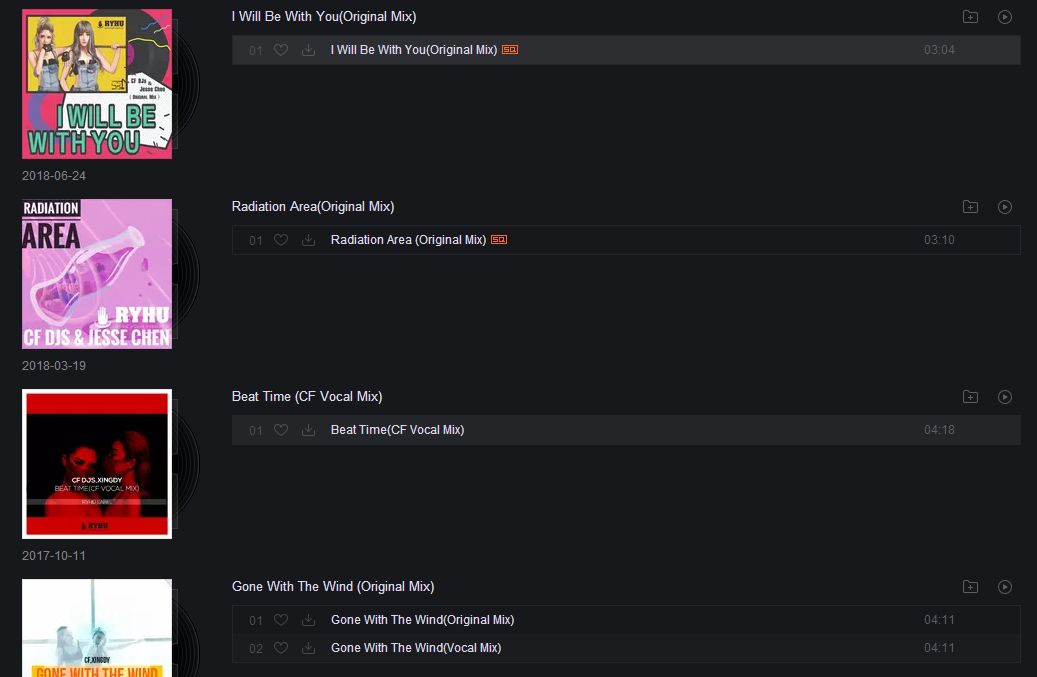 除了是活跃于全国各个城市的女DJ组合以外,CF DJs也是音乐制作人。从2017年开始发布作品,她们的所有作品都涉猎不尽相同的音乐类型。有EDM模式的Progressive House;有Big Room House;有Bass House;有融入Tropical House/Nu Disco/Funk元素的Moombahton。