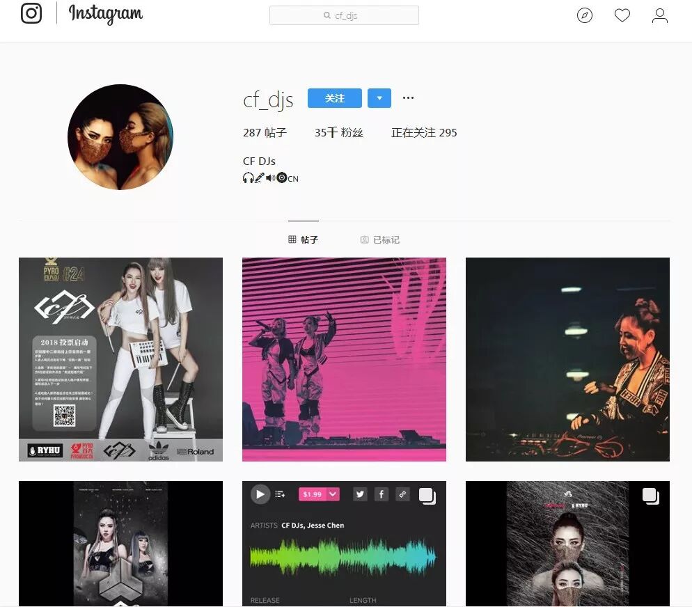 CF DJs的大部分动态都选择在Instagram更新,她们可能也希望未来成名以后走国际路线。所以无论是她们的照片、演出还是种种,在Instagram上的更新频率都比网易云音乐、微博等平台更高。如果想进一步了解她们,最好在Instagram上搜索“cf_djs”。