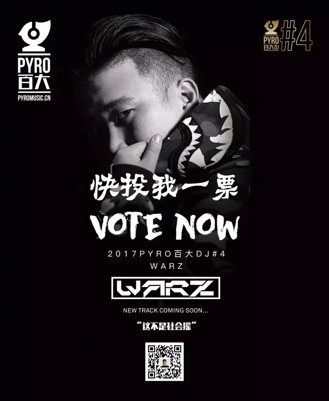 尽管去年,Warz已经在PYRO中国百大DJ排行榜上取得了第四名的好成绩,但是Warz仍然是被严重低估的名字。他完全有能力积攒更多的粉丝,也有底气被更多人记住。如果你支持他,一定别忘了在PYRO中国百大DJ排行榜上为他助力,投上宝贵一票。Warz还将在下个月发布新歌《这不是社会摇》。