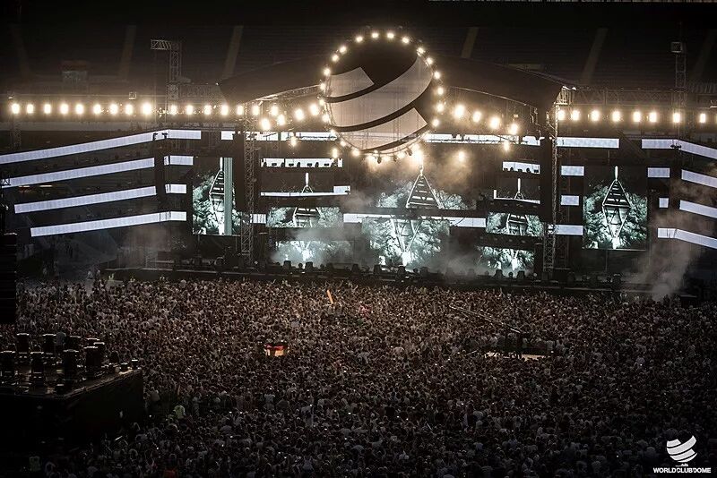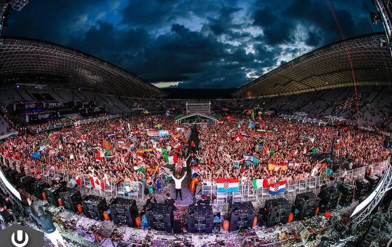 Ultra Europe:UMF的欧洲站,将其作为例子是因为很少电音爱好者不知道Ultra Music Festival。尽管知道Ultra欧洲的人挺多,可是很少人知道Ultra Europe就是在体育场进行的。跟所有体育场音乐节一样,分为舞池和看台两大区域。