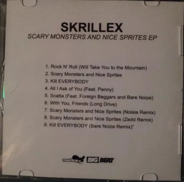 美国时间2010年10月23日,Skrillex早期成名EP《Scary Monsters and Nice Sprites EP》通过Mau5trap和Big Beat Records联合发布。这张EP在Billboard等榜单获得极高排名,RIAA认证金牌销量,甚至拿了几个格莱美大奖,使Skrillex走上巅峰。
