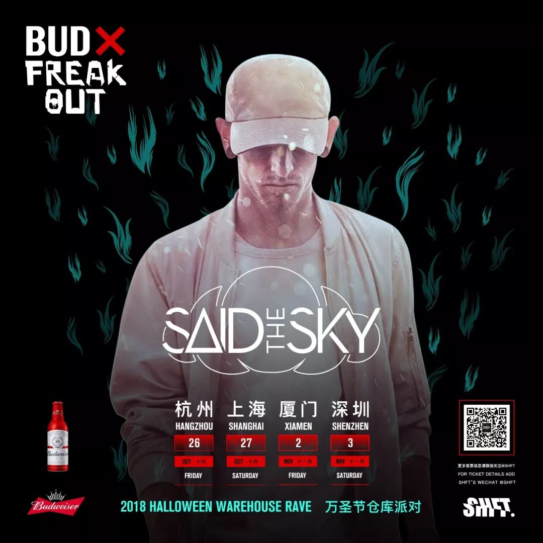 而在今年,中国最闹腾的万圣节派对Freak Out中,被置顶在所有海报中的Headliner是Said The Sky。你可以从海报中确定,其它Headliner皆为四位艺人列为一排,只有Said The Sky表现得像是整张演出海报中,“主角中的主角”。