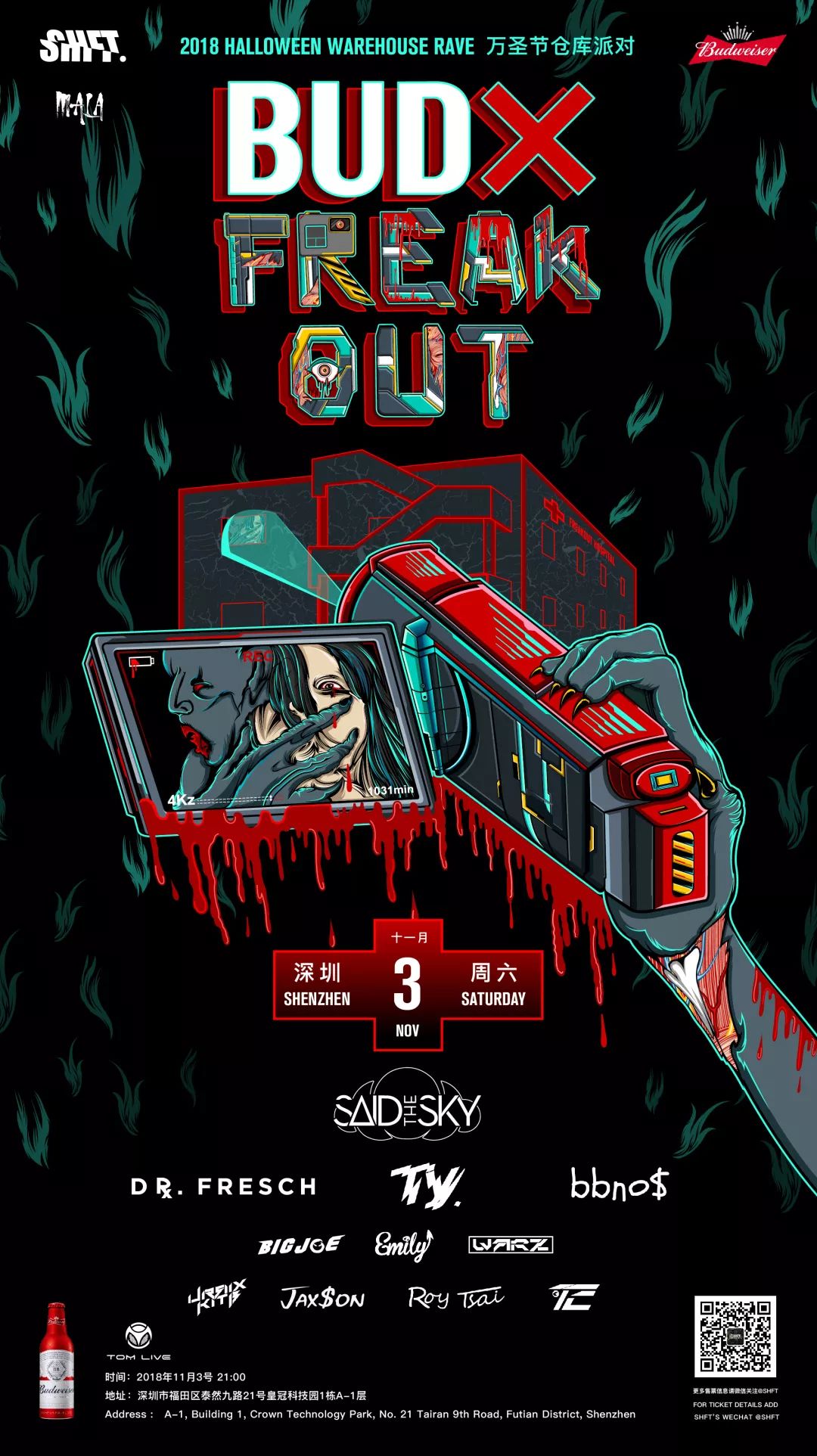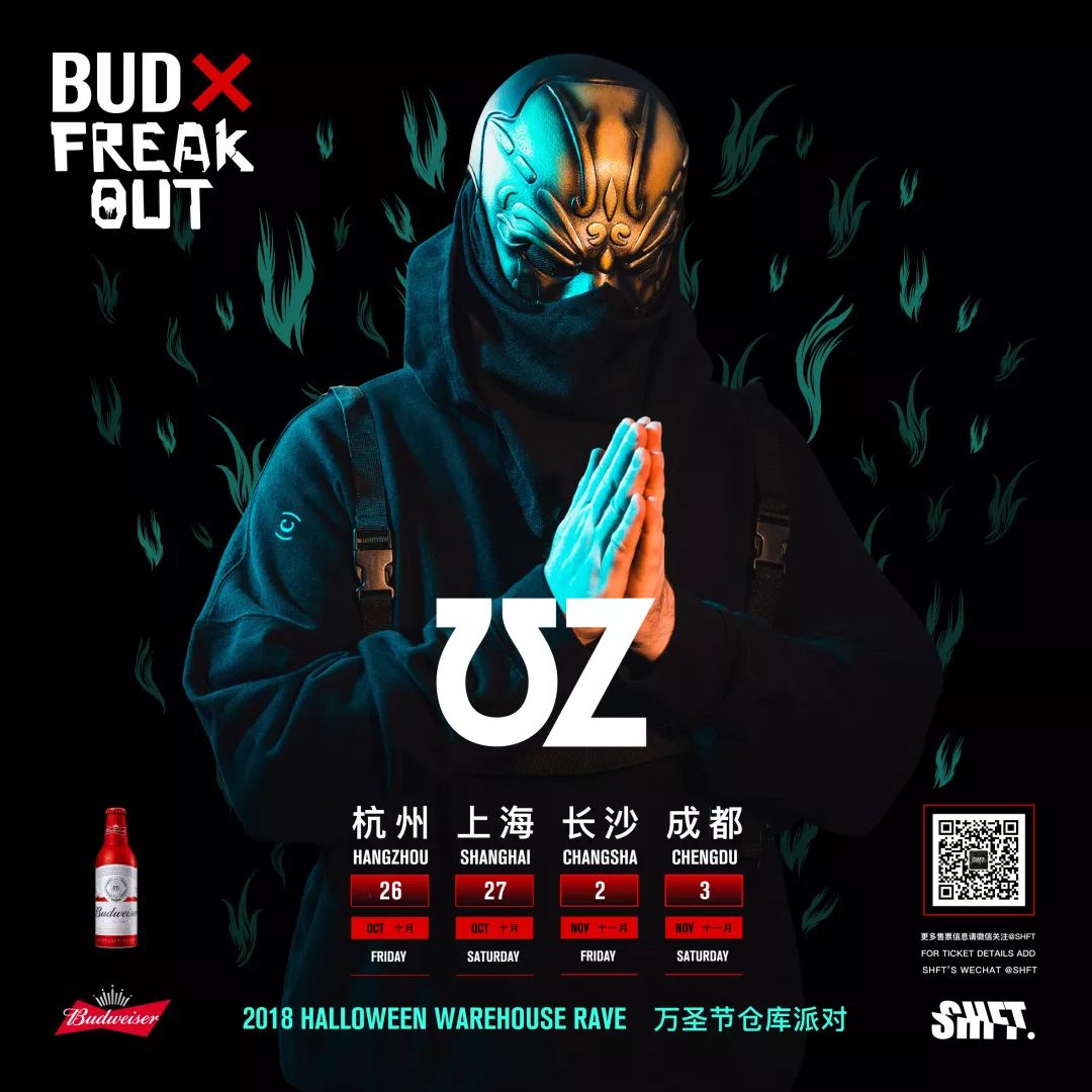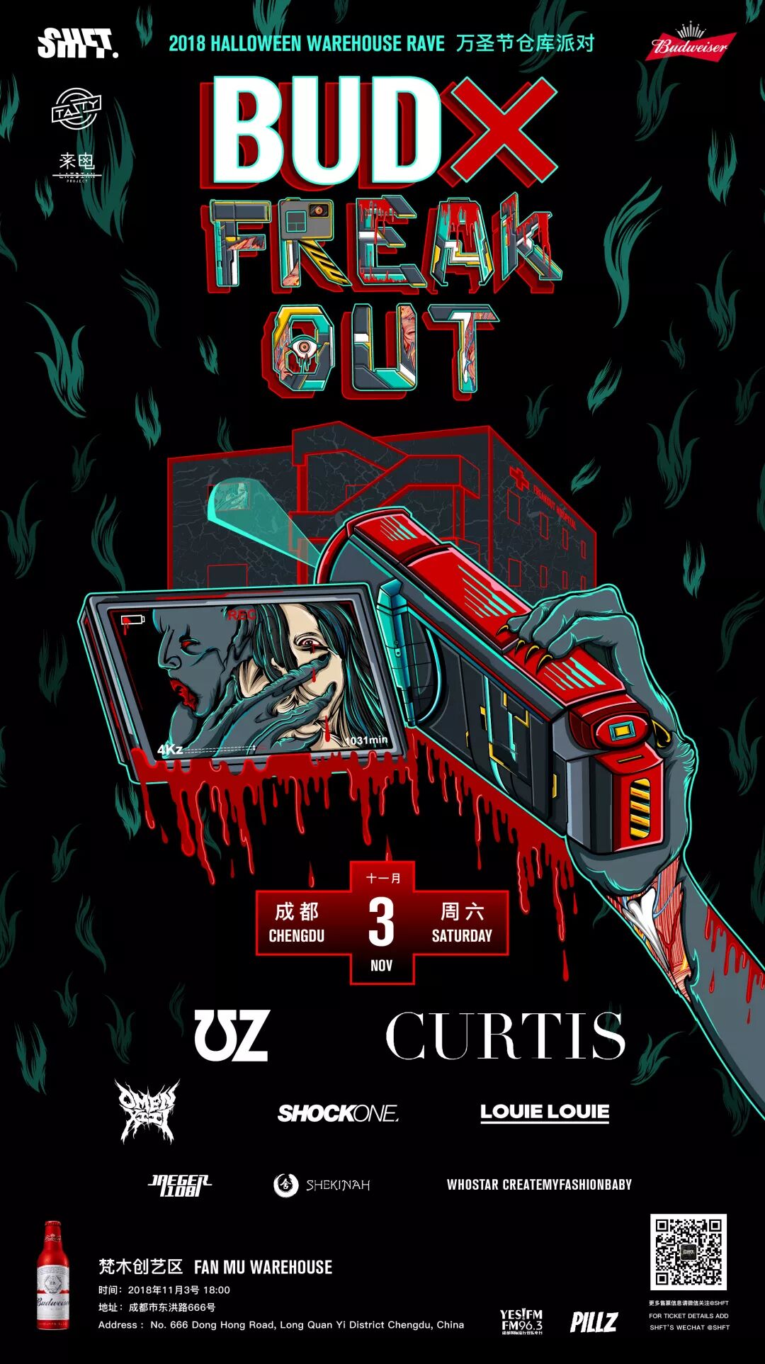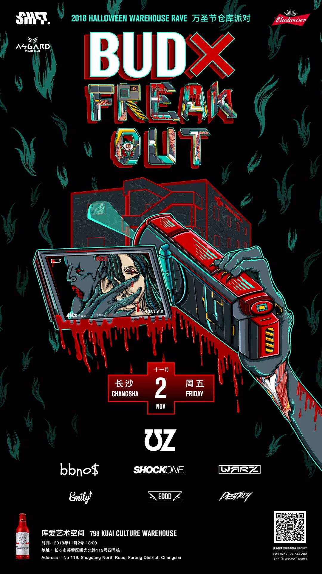 而在中国,其实也有专门的万圣夜派对。最具代表性的,肯定就是由SHFT举办的Freat Out了。Freak Out自10月26日开启了他们的万圣夜仓库派对巡演,多达6座城市,目前为止,已经完成了在26日的杭州站以及27日的上海站,大伙儿们都玩疯了。但这还没完。