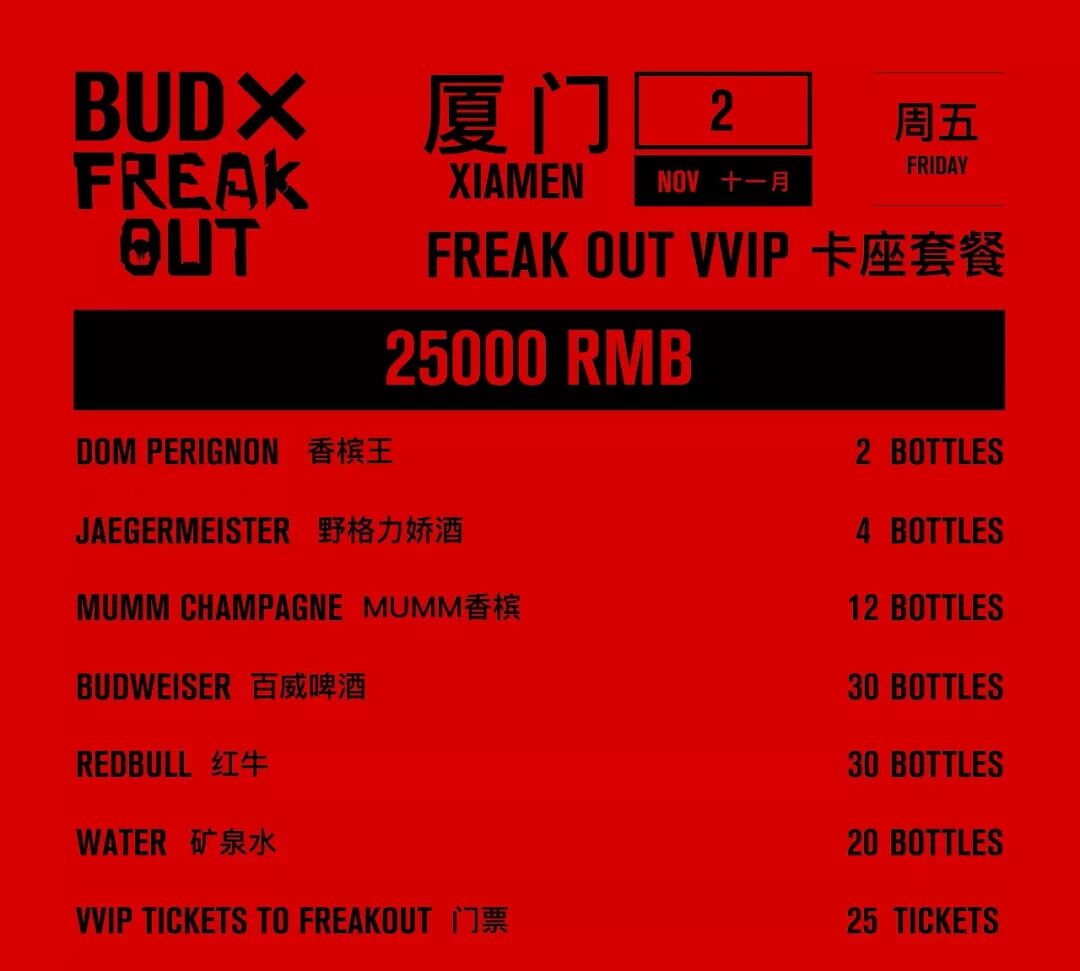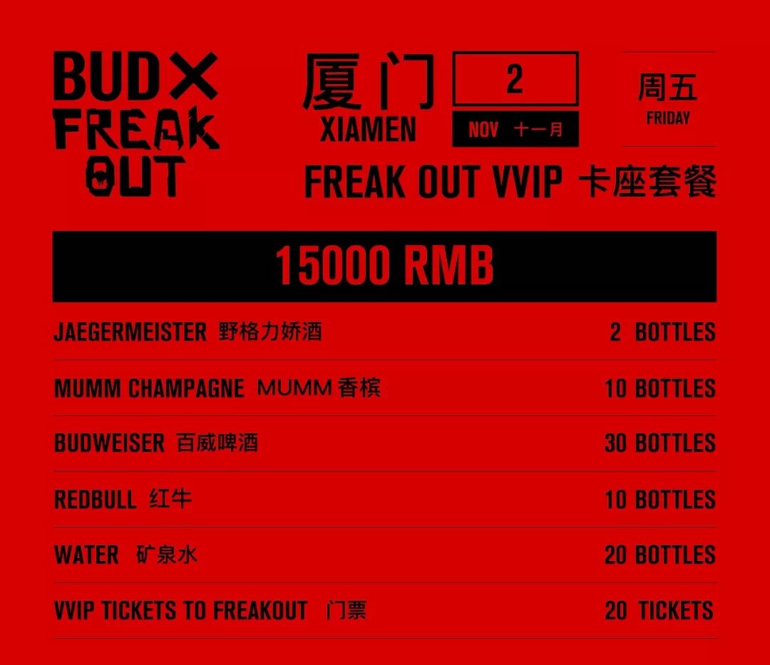 据悉,虽然这次的Freak Out仓库派对厦门站的规模可能很大,但具体人数未知。卡座仍在销售中,暂未售罄。有预定卡座习惯的Ravers,也尽量抓紧时间预定最后几张卡座。还未购票者,可选择在门口购买现场票。