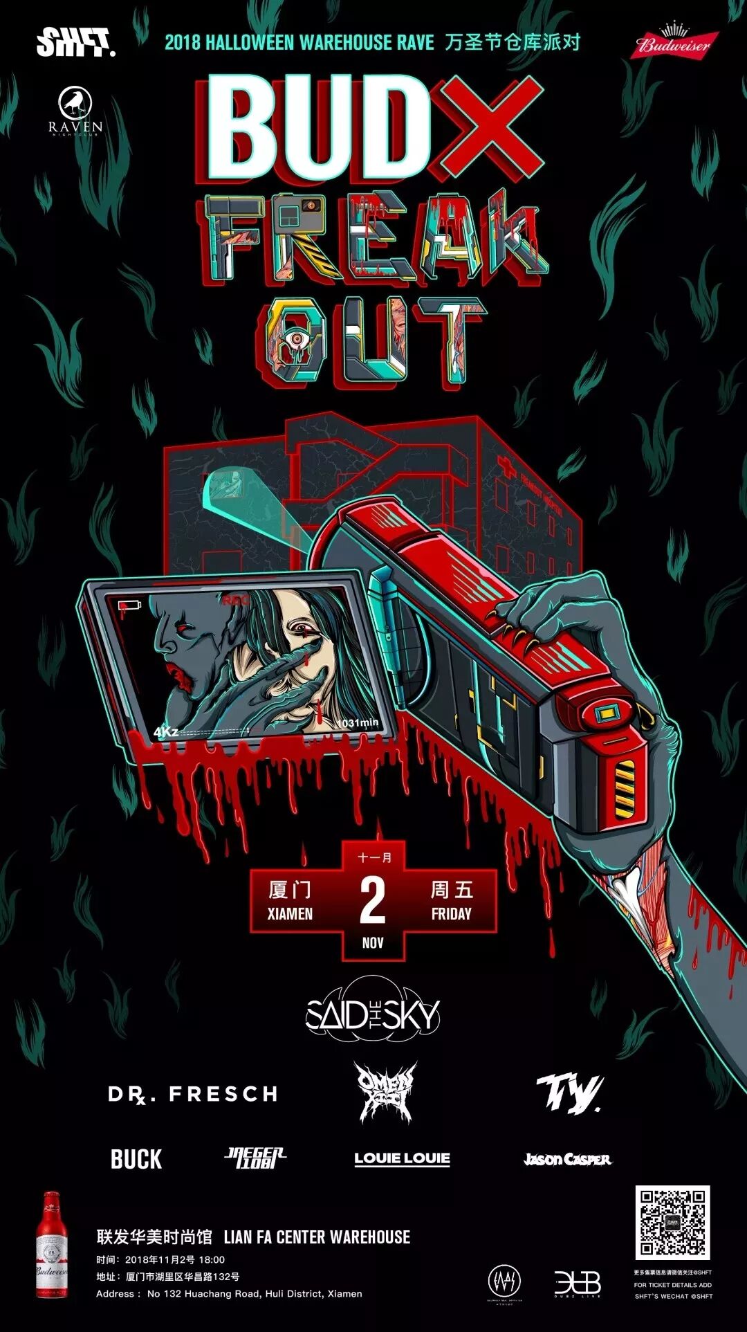 不过现在,厦门的仓库派对规模有可能会破纪录。以万圣夜为主题并且也是这段时间我们常常聊起万圣夜的原因——Freak Out的厦门站就在今晚,由SHFT与Raven联合举办,带来国内外知名DJ/Producers,以及国内外知名Rappers,同场演出。