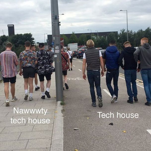 就在昨天,一个全新的Tech House Meme,也就是网络热传的“梗”,正在Instagram上被大范围转载。人们用一张图片区分了Naughty Tech House与Tech House这两种音乐风格。看起来Naughty Tech House更加新潮和花俏,而Tech House则显得有点“平庸”。