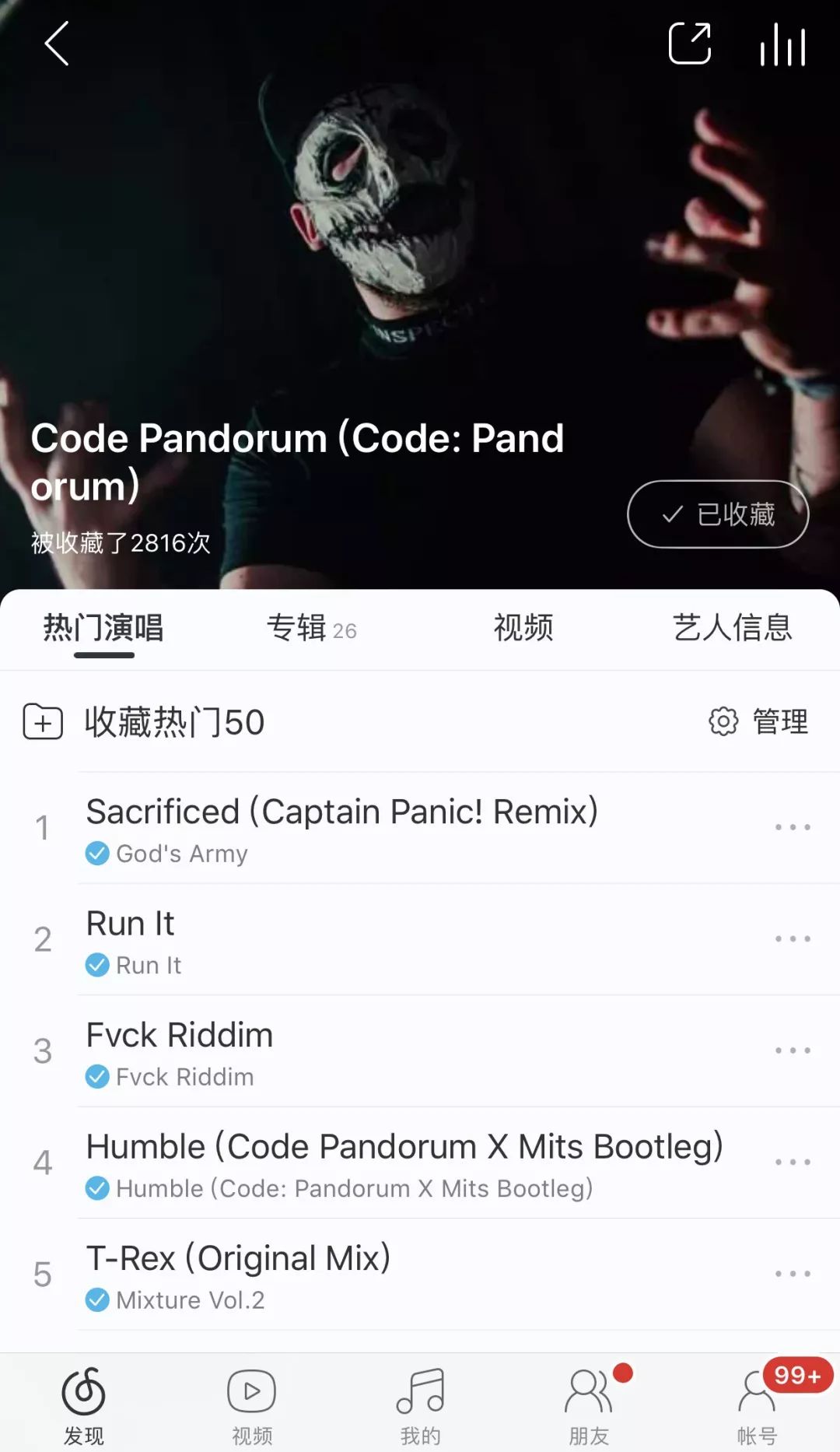 我们曾经多次推广过的“Deathstep之神”Code:Pandorum,在网易云音乐上竟有2000多粉丝。因为Code:Pandorum在外国也只有2~3万粉丝,所以这个数据还算不错。