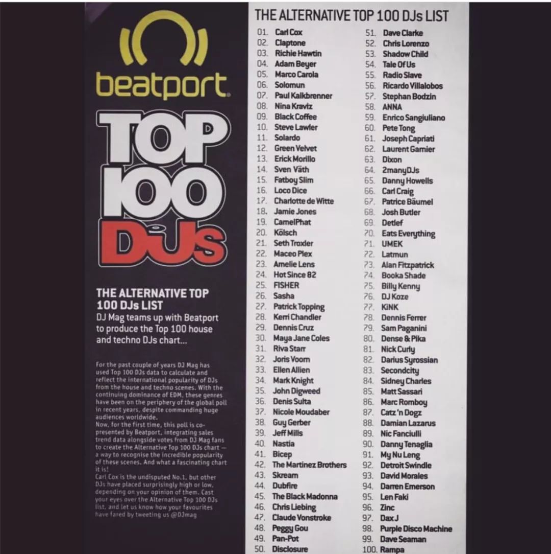 就在撰写这篇文章的二十几个小时以前,Beaport以及DJ Mag在线下杂志中发布了一张全新的百大DJ排行榜,这张榜单指向不同于EDM的真正意义上的House和Techno艺人。该榜单的结果根据官方称,是通过Beatport站内销量以及DJ Mag真正的投票决定,完整排名如下。