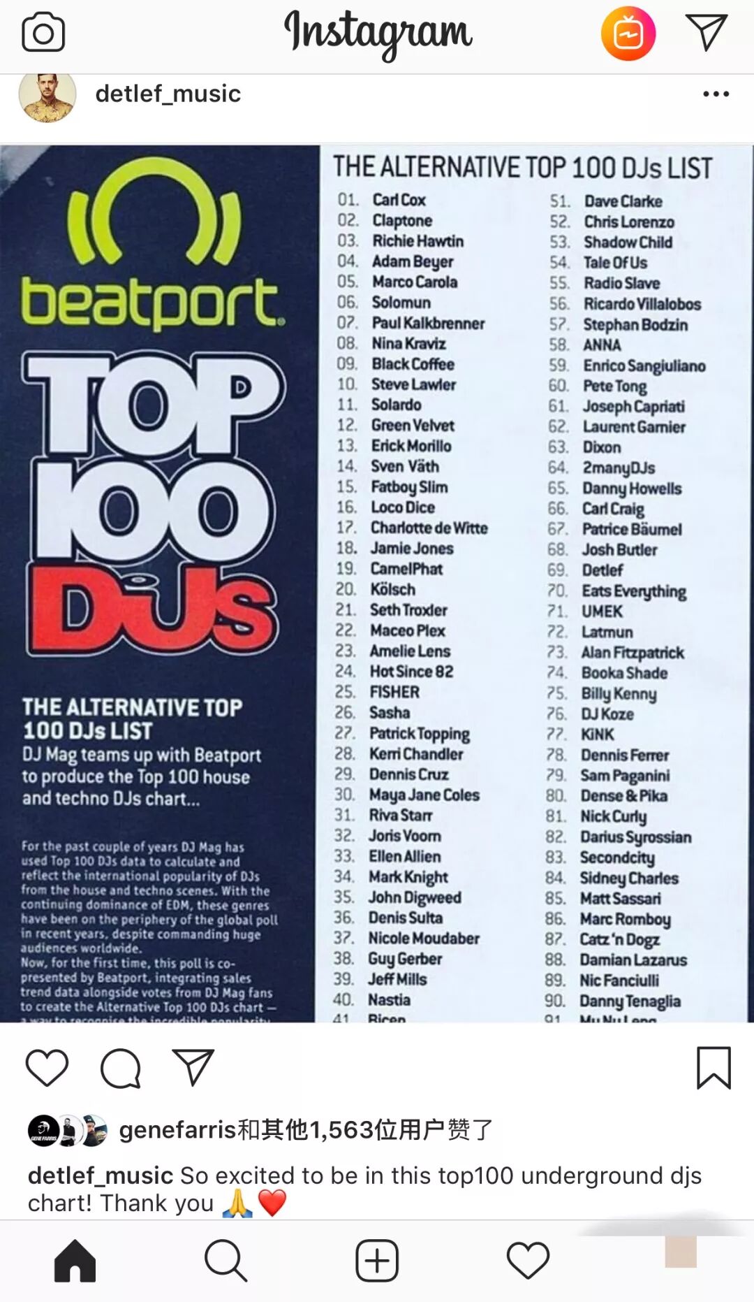 至于图上说的Alternative Top 100 DJs即另类百大DJ的说法难以服众,从音乐风格上来说House/Techno并不属于Alternative Music,从字面形容词上来说他们也并不属于“另类”。所以没有多少艺人同意“另类百大DJ”之说,大家更喜欢“House/Techno百大DJ”的说法。
