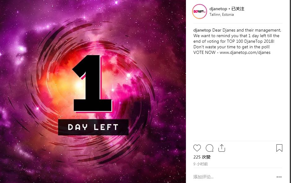恰于今日,DJaneTop官方Instagram发布动态,告知各大女DJ以及他们的经纪人们,DJaneTop的百大女DJ排行榜将于明天开始投票,提醒这些女DJ们开始拉票。作为与世界上大部分DJ榜单类似性质的民意调查,明日开启的入口将决定今年的该榜结果。