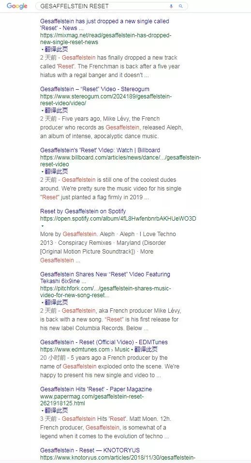 就在两天前,GESAFFELSTEIN发布了他的最新作品《Reset》,而《Reset》可以直译为中文的“重启”,但也可以理解为“回归”的意思。一名艺人归来了,他们当然可以用“Reset”这个词,“GESAFFELSTEIN Is Back”不再被任何人怀疑是真是假。