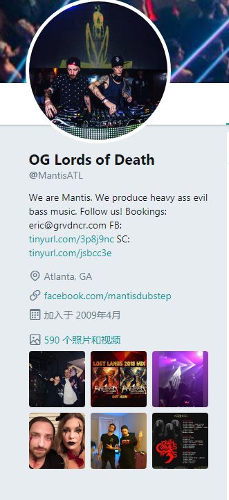 但除了Code:Pandorum以外,另一个组合通过社交媒体自诩OG Lords of Death,即“很叼的死神们”,他们是Mantis。Paul和Taylor组成的Riddim Dubstep/Brostep/Melodic Dubstep等曲风的双人组,客观而言不算太出名,但音乐质量绝对过关。题外话,Melodic Dubstep是懂音乐的人公认的音乐风格。