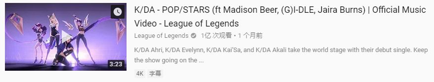 《POP/STARS》更是首支代表英雄联盟发布作品进入流行音乐排行榜的曲目,可见英雄联盟不仅继承了拳头公司Riot Games的专业厂牌运作血液,还是一家很优秀的经济公司。光以游戏定义英雄联盟?已经行不通了。大胆创新之举必将再次颠覆EDM/Pop场景。