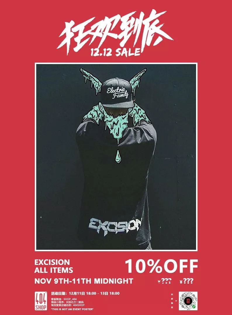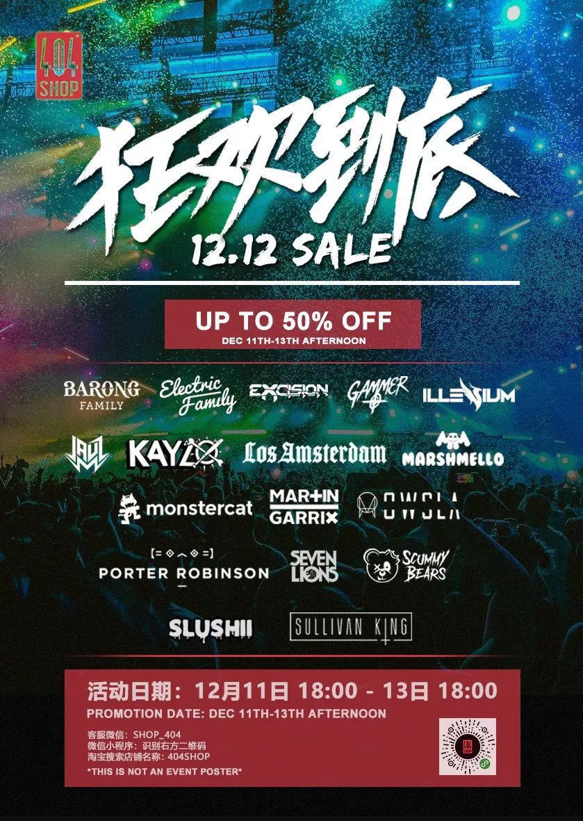 而就在今年双十二,坚持推广电音正品周边的404SHOP将再次开启大酬宾,带来与全世界知名艺人合作的正品周边冰点价格,以Bass/EDM为主。包括Porter Robinson/Yellow Claw/Marshemello/ILLENIUM/JAUZ/Excision/OWSLA等商品的优惠销售。