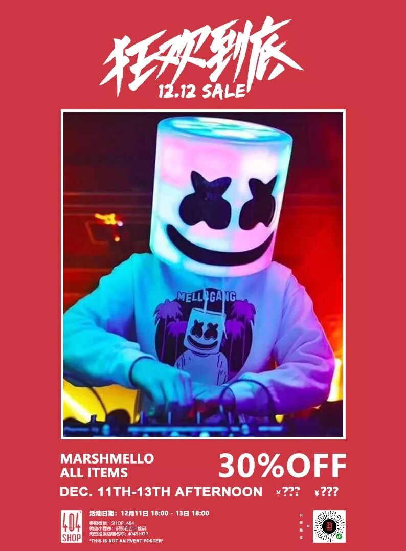 Marshemello周边 —— 七折起:DotCom的头套身份,但DotCom与Marshmello两个身份却制作着不尽相同的音乐风格,所以粉丝已经习惯了不再纠结谁是Marshmello。现在的Marshmello是家喻户晓的Future Bass/Melodic Trap代表人物之一。