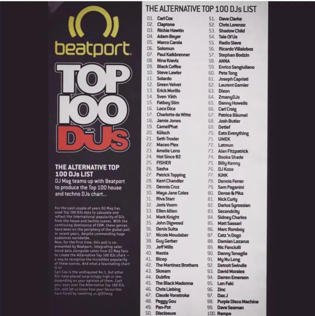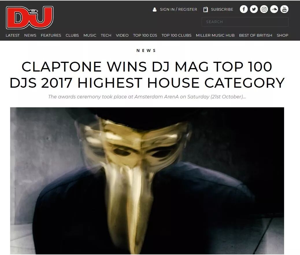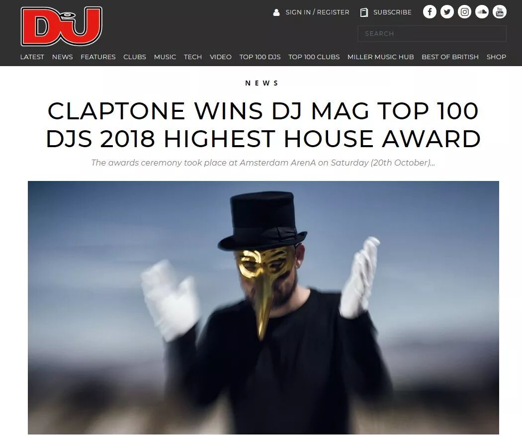 不止在DJ Mag连获两年“最佳House艺人”,Claptone在前段时间的Beatport × DJ Mag百大Techno/House DJ排行榜中,也取得了第二的好成绩,仅次于Techno老牌艺人中的大哥大Carl Cox。作为结合票选、Beatport数据、主观评价的排名不失一定参考价值。