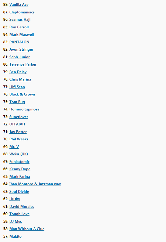 一些读者们可能觉得这些名字相对陌生。那是因为现在不少乐迷对于House Music的认知仅限于EDM House,只有相对一部分人花了时间研究和了解真正的House音乐。但这何尝不是一种了解更多House DJ/制作人的渠道呢?感兴趣可以听听他们的作品。