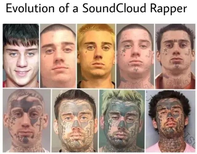 每一位Mumble Rapper或者Soundcloud Rapper都爱的Gucci T恤、金银项链、闪亮镶钻银色手表、拍照必上镜的钞票、没人看得懂想表达什么的头绳被花环取代。Soundcloud Rapper的打扮看似千篇一律,整装待发,你也可以成为Soundcloud Rapper。