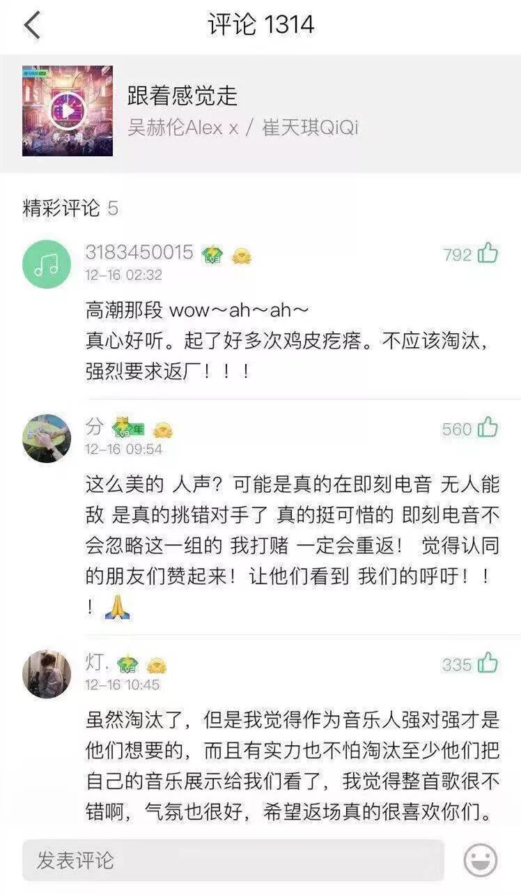 而大量网友们也纷纷表示吴赫伦&崔天琪不应该被淘汰,甚至有很多观众认为崔天琪才是《即刻电音》上真正的Girl Power。网友认可度出奇之高。