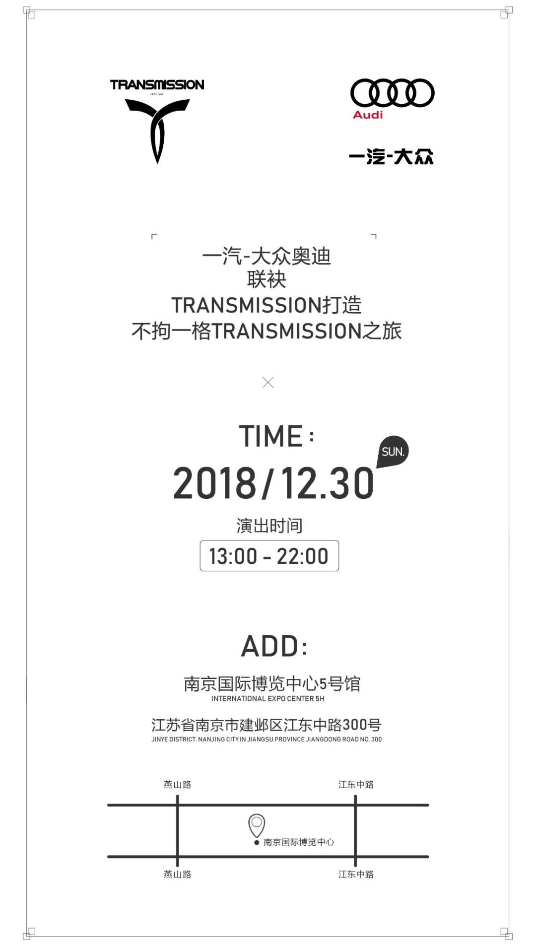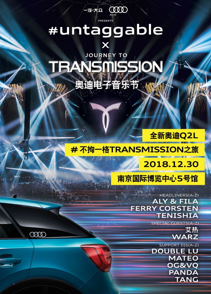 近日,大众、奥迪传来喜讯,正式攻入中国电子音乐领域,与国际知名电子音乐派对品牌Transmission强强联手,举办Transmission预热派对!这场预热派对将于12月30日强势落地南京,打造南京首场大规模的、国际性质的电子音乐活动。