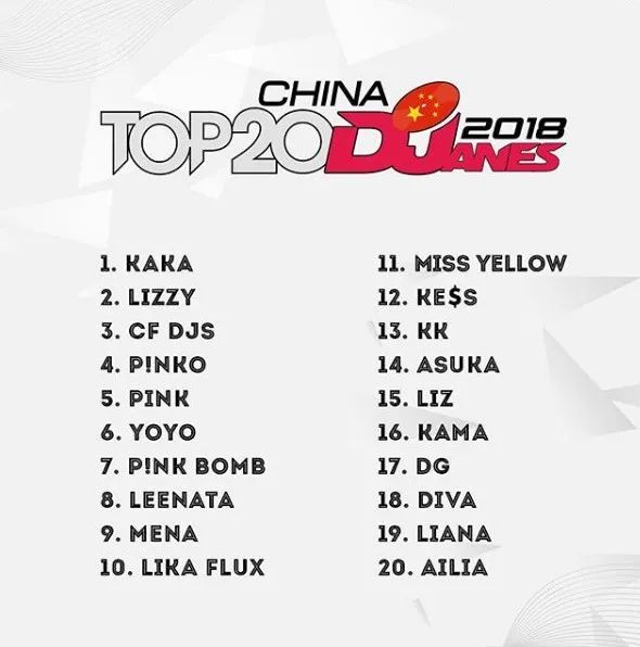 在DJane Mag全球百大女DJ成绩揭晓以后,就已经有人预测KAKA会在今年的中国Top 20女DJ排名中取得桂冠,这一预言有幸实现。由于篇幅原因,暂不对所有女DJ逐一介绍,主要面向本届中国冠军KAKA和她在2018年的新音乐,其余19名女DJ请回顾文中第三自然段的总排名。