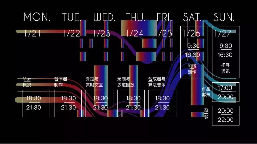 于一月底,国内将有一场主要面向电子音乐制作、交互数字音频、音色交互的长达七天的教学,我们将它推荐给有条件参与的读者们。对于希望提升自身技能的电子音乐制作人以及渴望成为电子音乐制作人,可参考和考虑对教学内容的需求。