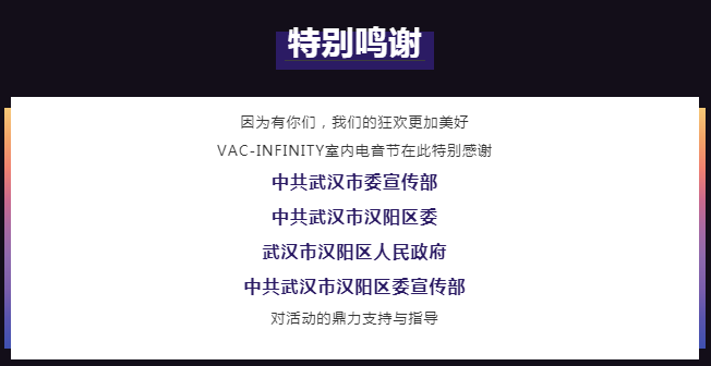 “INFINITY”共获得了武汉市委宣传部、武汉市汉阳区委、武汉市汉阳区人民ZF、武汉市汉阳区委宣传部的支持,受到ZF单位的强烈认可,无论在线上还是线下的许多步骤都会进行得更加顺利。