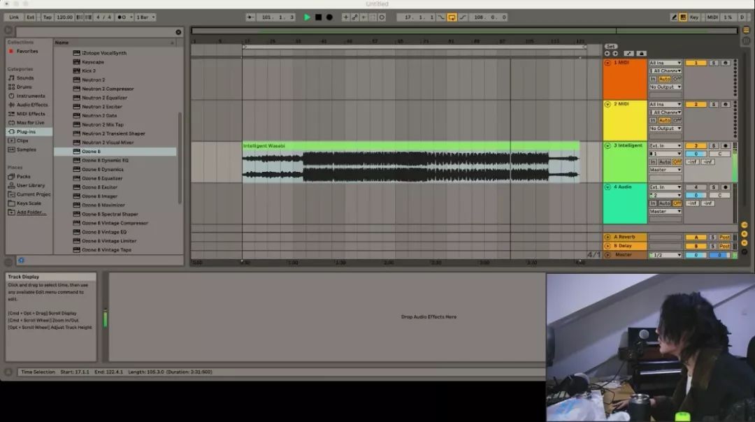两位的比赛作品可谓各有千秋,都有可圈可点之处,由于曲风和模式不同,难分高低。先谈梁欢,梁欢在本次比赛中,选择了一条“技术流”的路线,强调插件的使用以及音色设计。通过众多VST,对采样进行处理,最终将Arp作为主旋律音色,谱写旋律。
