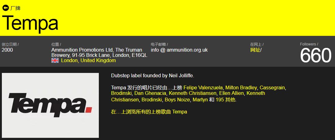 除了我们前段时间提到的Big Apple Records以外,另外一个被认为是Dubstep两大厂牌之一的名字,即是Tempa Recordings。Tempa Recordings诞生于2000年,作为Ammunition Promotions的子厂牌之一,它的来头可不小。