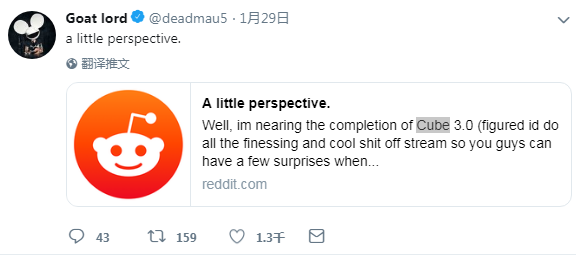 我们一起回顾一下关于Cube 3在社交媒体上已公开的流程。2019年1月29日,Deadmau5说他的Cube 3.0已经完成了初步设计,甚至后来还在视频网站上发布了30多分钟的设计理念视频。传言称UMF 2019会是Cube 3.0的首次正式展现。