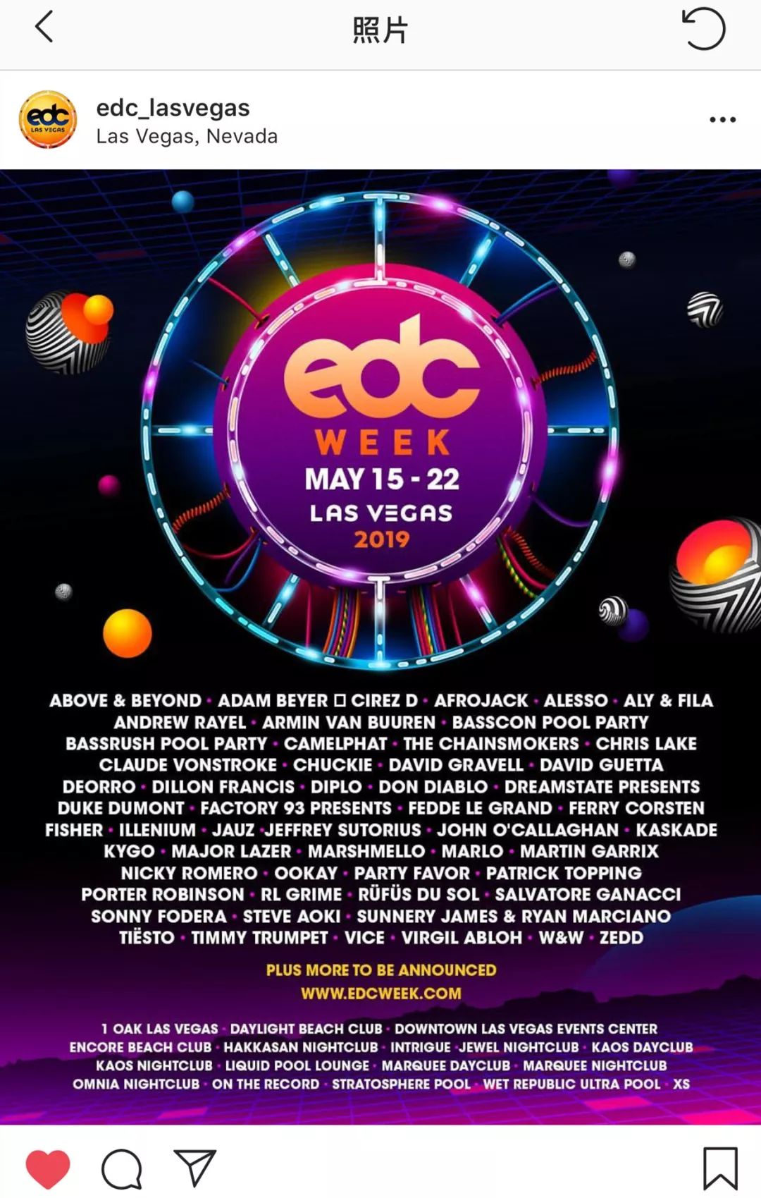 阅读原文众所周知的国际一流音乐节之一EDC,全称Electric Daisy Carnival,前天于社交网络上宣布了相关Club Shows的完整阵容以及合作的拉斯维加斯地区的完整夜店。通过下方海报,读者们很容易得知这些形式的演出被叫作EDC Week。