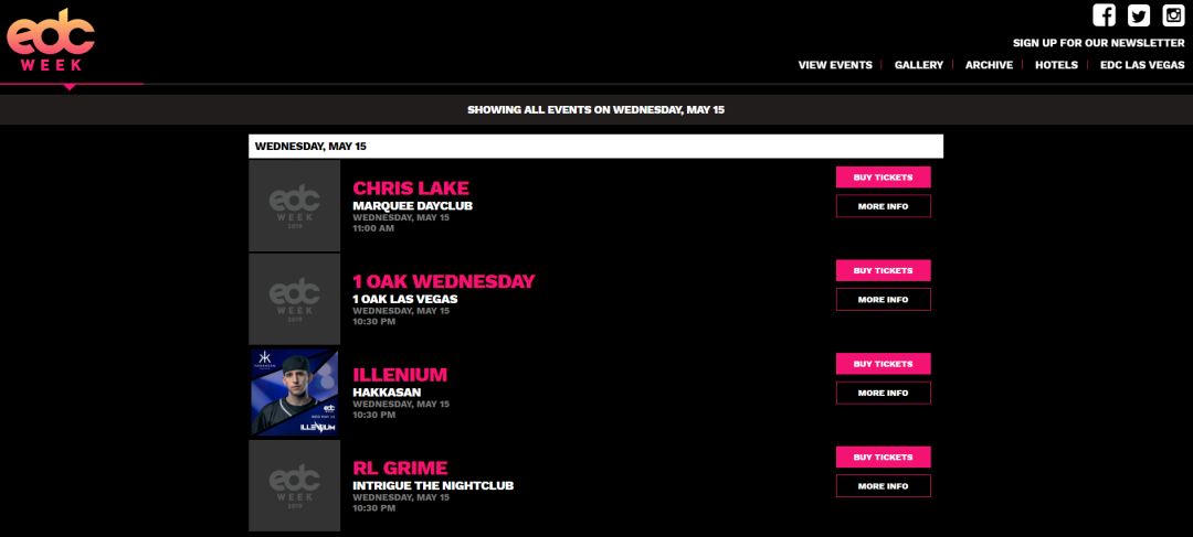 不知道是因为一些艺人合作上出现了摩擦,还是场地合作上出现了摩擦,撰写这篇文章的时候,EDC和EDC Week都已经删除了今年Club Shows的海报。但万幸的是EDC Week的官网还保留着艺人、夜店的合作信息。归类完整,方便了Ravers。