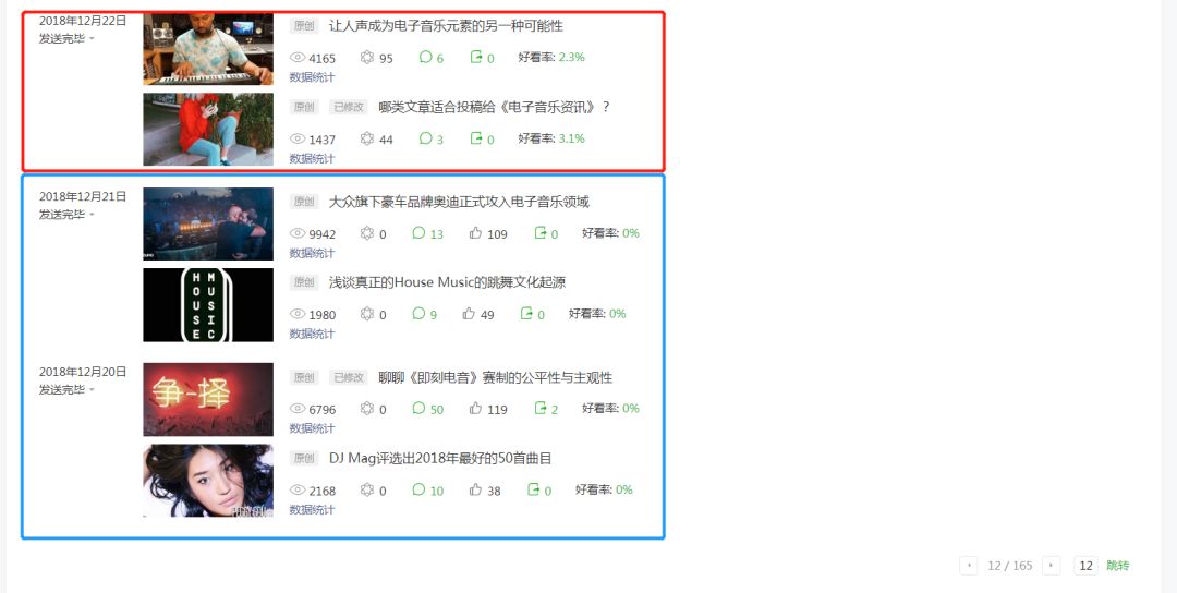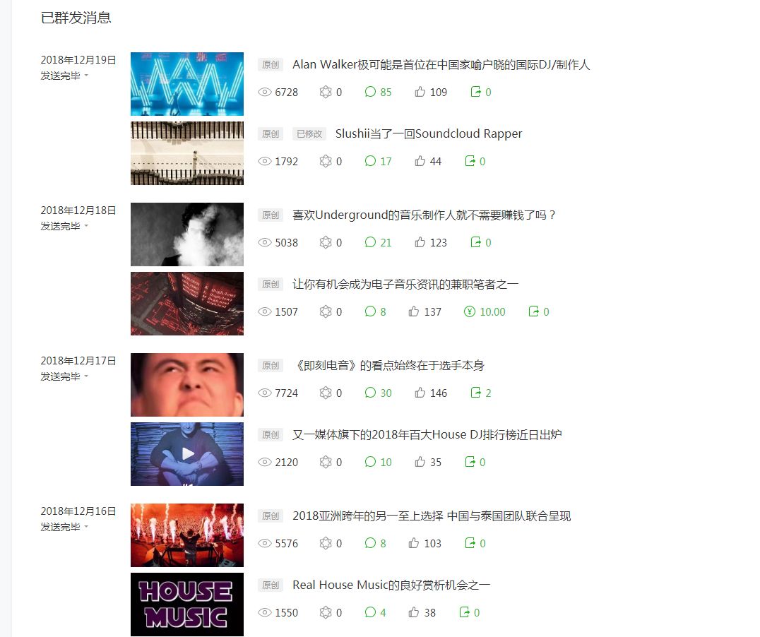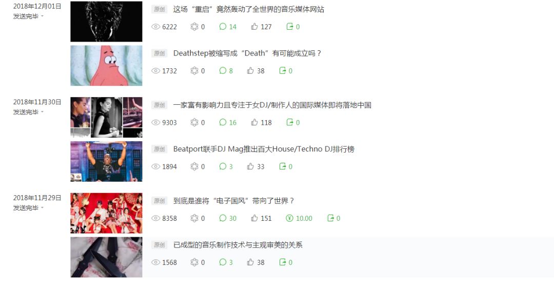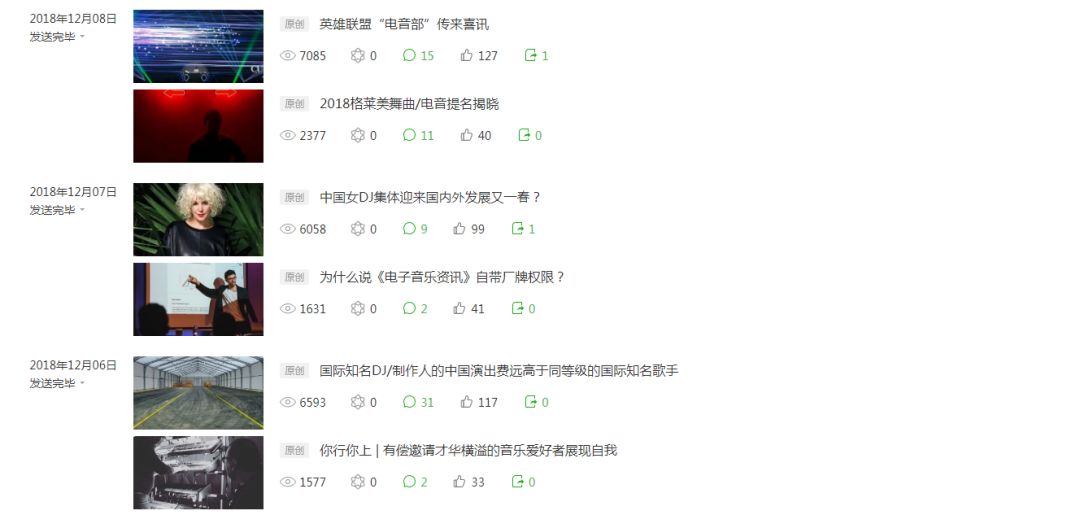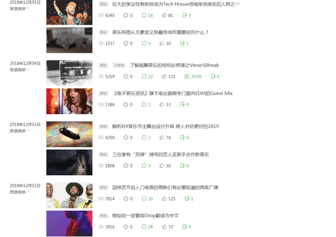 就事论事,根据以上抽查的点赞数据可得出,《电子音乐资讯》的文章点赞率大概在1%到3%这个范围内,属于非常合理的运营范畴。说个自嘲的事,子品牌《ElectronicNegative》文章点赞率通常在5%到15%,时常令我们的笔者们自叹不如。
