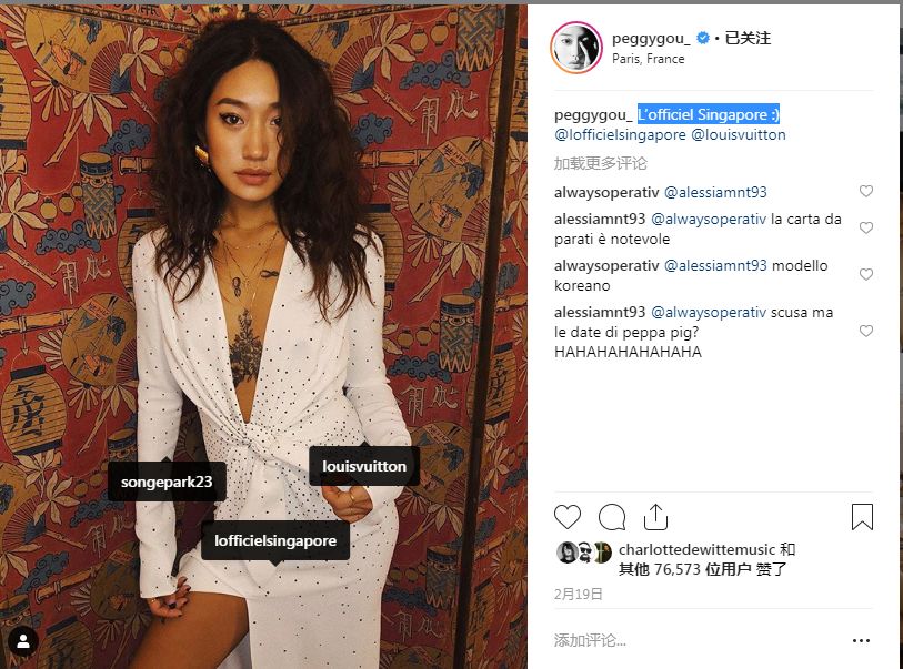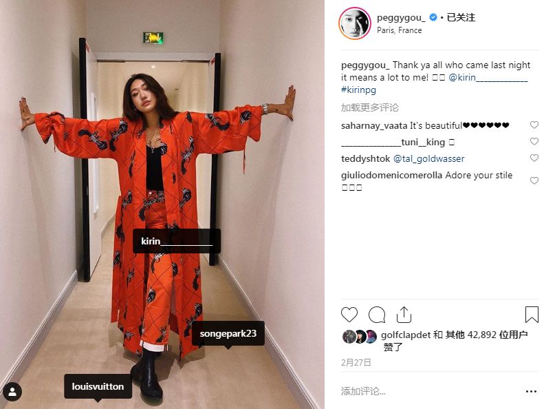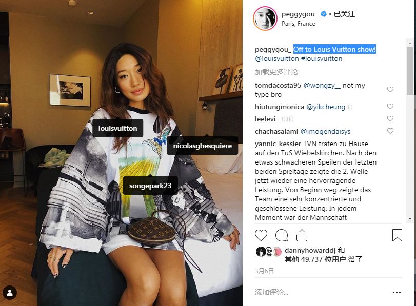 但这已经不是Peggy Gou第一次与Louis Vuitton打交道了,她一直是一个Louis Vuitton的忠实粉丝,近几个月以来极其频繁地展示了她穿着的Louis Vuitton服饰,总是会At Louis Vuitton官方账号。很多粉丝都猜测两者间有广告代言的合作关系,不至于只是单方面的喜爱。