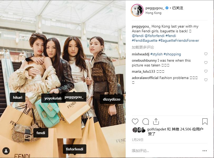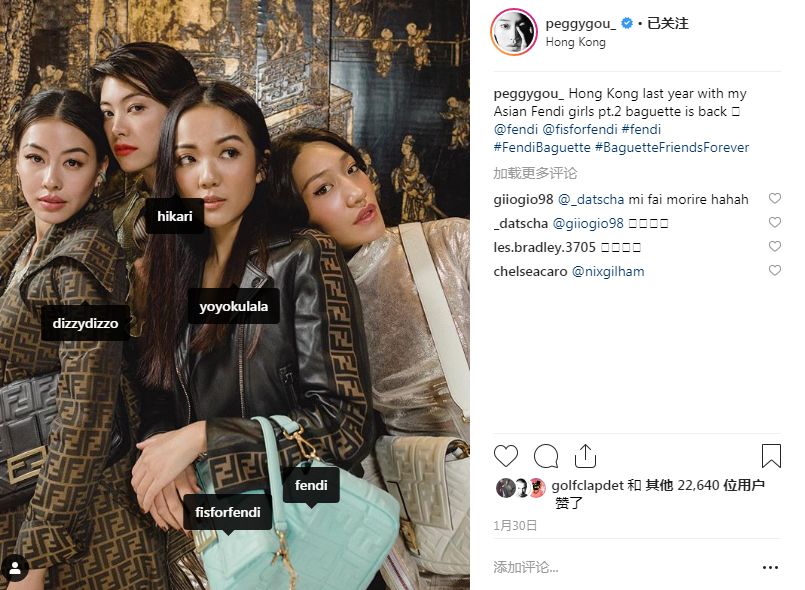 一月底的时候,Peggy Gou还受邀为时装品牌Fendi广告代言,与多名亚洲模特组成“Asian Fendi Girls”。Peggy Gou确实很符合模特界的审美。