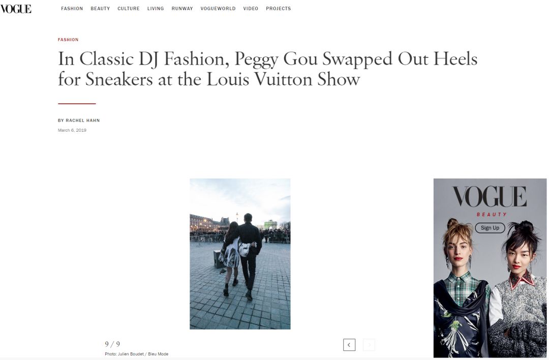 Peggy Gou在时尚领域的成绩不仅限于Kirin。更临近这个阶段的是Peggy Gou与众所周知的Louis Vuitton也有合作,即LV。她受邀出现在了巴黎时装周的Louis Vuitton Show上,并且坐在秀场的前排。VOGUE再次对Peggy Gou的参与进行了报道。