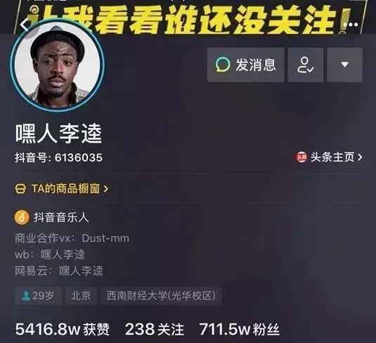 “嘿人李逵”的人气主要集中在抖音,是因为他总是发布着一些吸粉无数的视频。截止到发布本篇文章,“嘿人李逵”已经在抖音上吸引了711.5万粉丝,当之无愧的抖音最火DJ,抖音以外的其它平台又有百万追随者。他一步步成为跨越音乐领域与娱乐领域的明星。