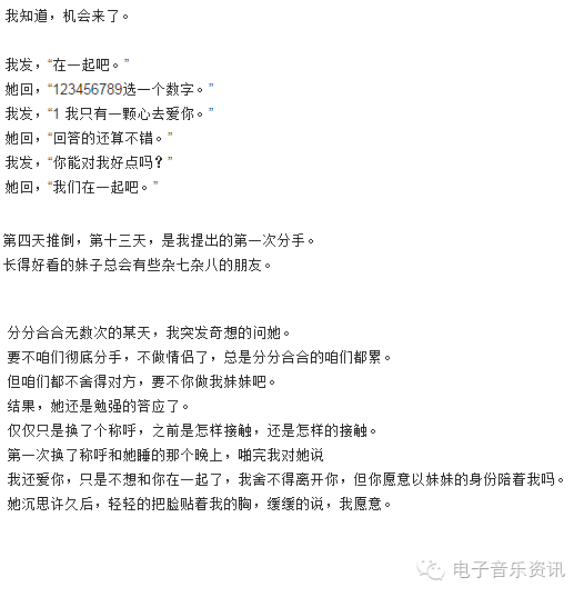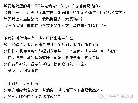 兑个人朋友圈的现,答应大家赞要是到了70就写,而一夜到了140。小编再次要写一篇无关于电子音乐的文章插播了。事情是这样的,原本小编在无聊翻社交网络的时候看到一名网友发了个渣男的知乎,专业通过一些根本跟答案无关的提问去散播自己的渣男历史,小编本着想学学怎么当渣男的思路去看了一下那些回答,发现那些事儿,以我这性格是怎么样也做不到。于是小编再次放弃了当渣男的念头,准备好继续万年单。