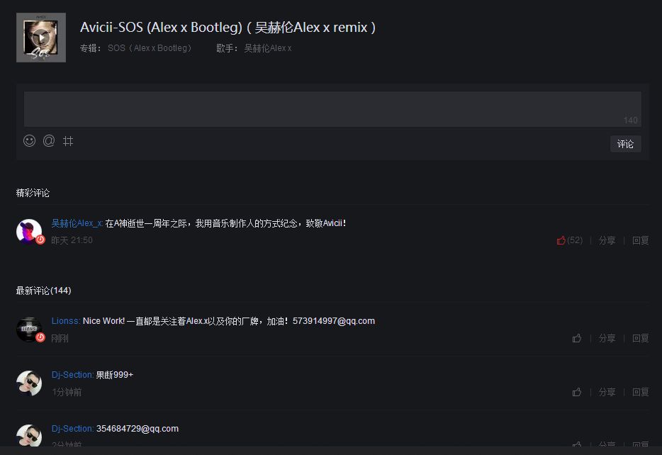 作为Echo Stage Records的创始人,以及国内拥有一定影响力和粉丝数据的DJ/音乐制作人,在外国舞台有过多场演出经历的吴赫伦Alex x,用他的音乐,向Avicii致敬,这是制作人的方式,也是让Avicii的粉丝有机会听到《SOS》更多面貌的机会,毕竟音乐永存。或许我们都在各尽其职,让Avicii不曾离开乐迷身边。