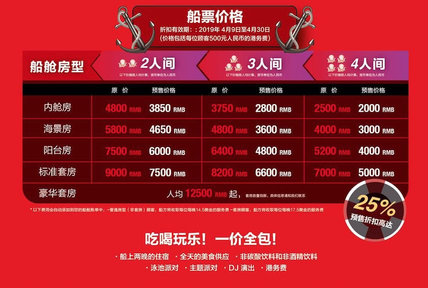 如标题所述,今年的“TEC游轮电音节”,强调游轮电音节的性价比。全套费用人均2000元起步,派对长达三天,且除了门票、船票以外,更包含两晚住宿费用、美食、饮料等三日的游轮享受。若算上娱乐、酒店等事宜、人均消费并非贵过常规的电音节。另外,音乐节在端午节假期举行,3天行程无需请假,不耽误工作或学习,升级文旅体验。