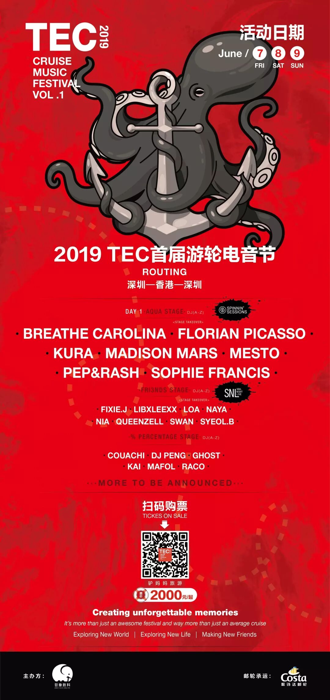 就在昨天晚上,“TEC游轮电音节”官方微信公众号,宣布了他们的第一批阵容,这场邮轮电音节将包含三大舞台,分别为主舞台——AQUA、泳池舞台——FRI3NDS、室内Techno舞台——%。了解一下由Spinnin'签约艺人、韩国女DJ、本土DJ组成的首波阵容吧。