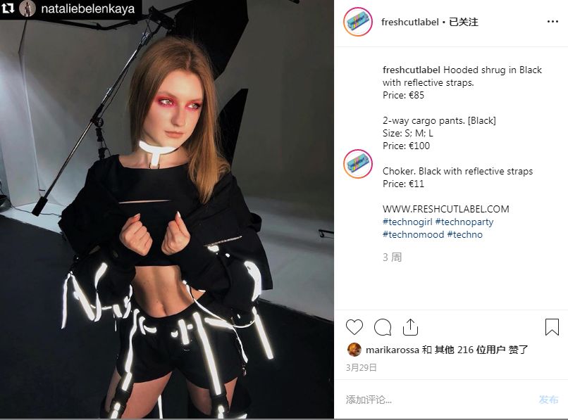 就像那些热爱时尚领域的其他Techno艺人一样,Marika Rossa创立了属于她的唱片厂牌以及服装品牌,合二为一,名为Fresh Cut。名义上是Label,但Fresh Cut的多数动态均与他们设计、出版的服装有关,又夹杂着一些Marika的现场视频以提升曝光。