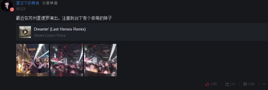 但这一切,既离不开不限于公众号在内的新媒体、社交网络的传播,线下场景也至关重要。而中国首批Dubstep制作人之一“星空下的舞者”【Since 2012】在正式开启商演模式以后,登台苏州知名夜店“星德罗”,这是一起向主流夜店和人群推广Dubstep的必要功课。